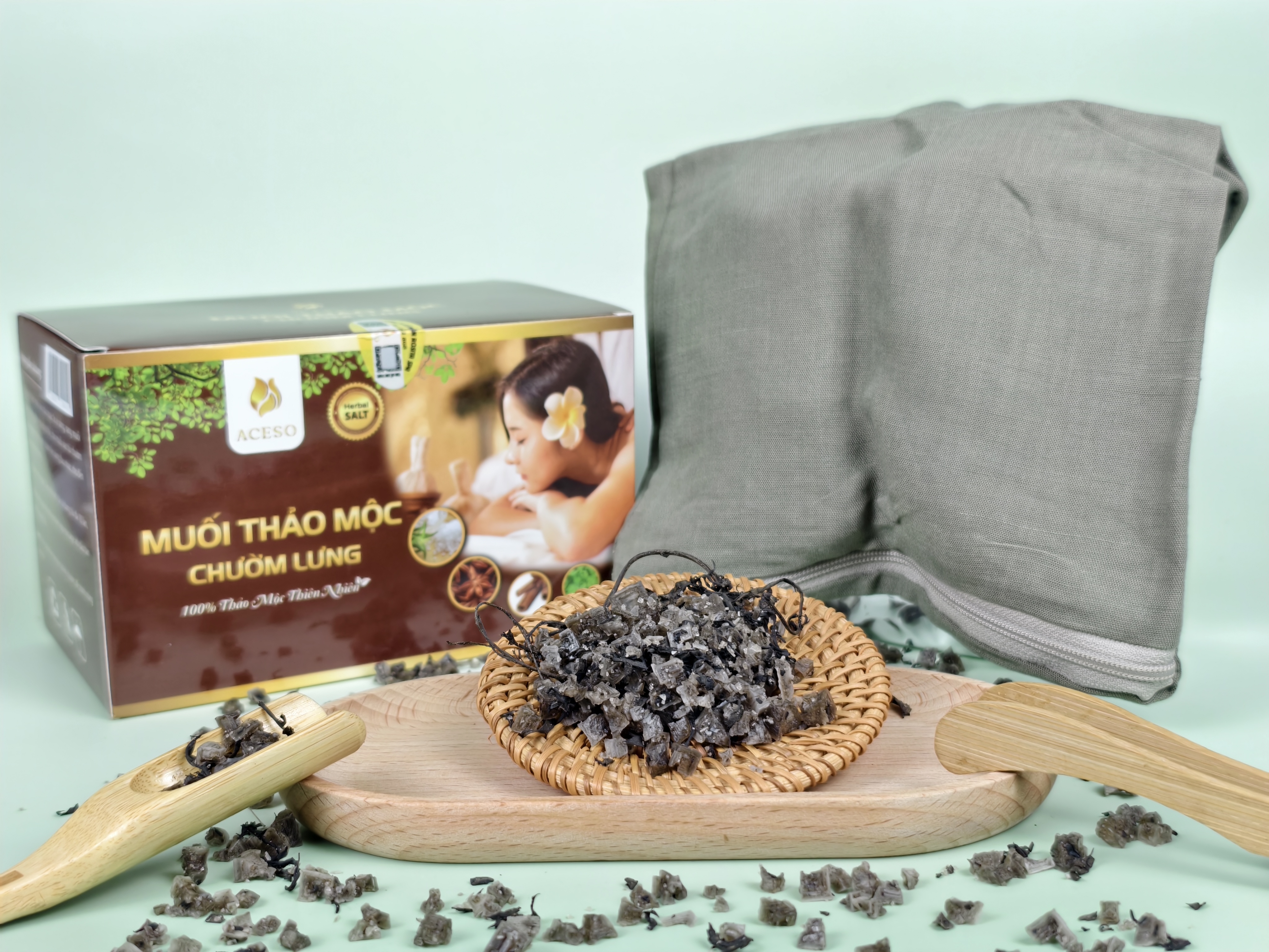 Muối thảo mộc chườm lưng Aceso - giải pháp giảm đau, thư giãn hiệu quả từ thiên nhiên